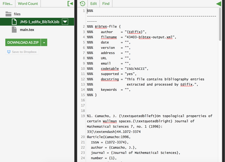 Once you have an Edifixed bibliography saved as a BibTeX file, you are ready to import your bibliography into your LaTeX project.